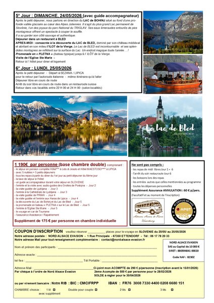 Renseignements : 06 17 78 20 33 / contact@nord-alsace-evasion.fr